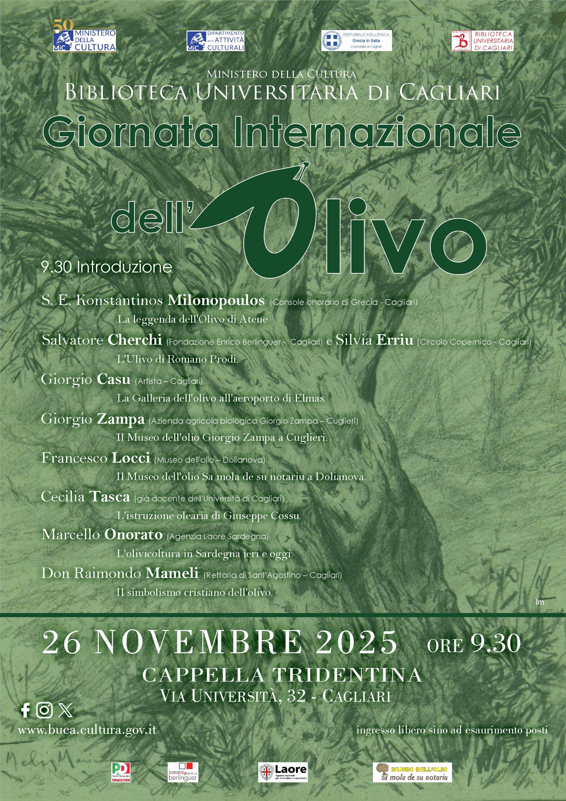 Il 26 novembre si celebra la Giornata Internazionale dell’Olivo, promossa dall’UNESCO per sottolineare il ruolo e il valore di uno degli alberi più antichi e simbolici della nostra storia. In occasione di questa ricorrenza, mercoledì 26 novembre alle ore 9.30, presso la Cappella dell’ex Seminario della Biblioteca Universitaria, si terrà un convegno dedicato al tema, con interventi e riflessioni.